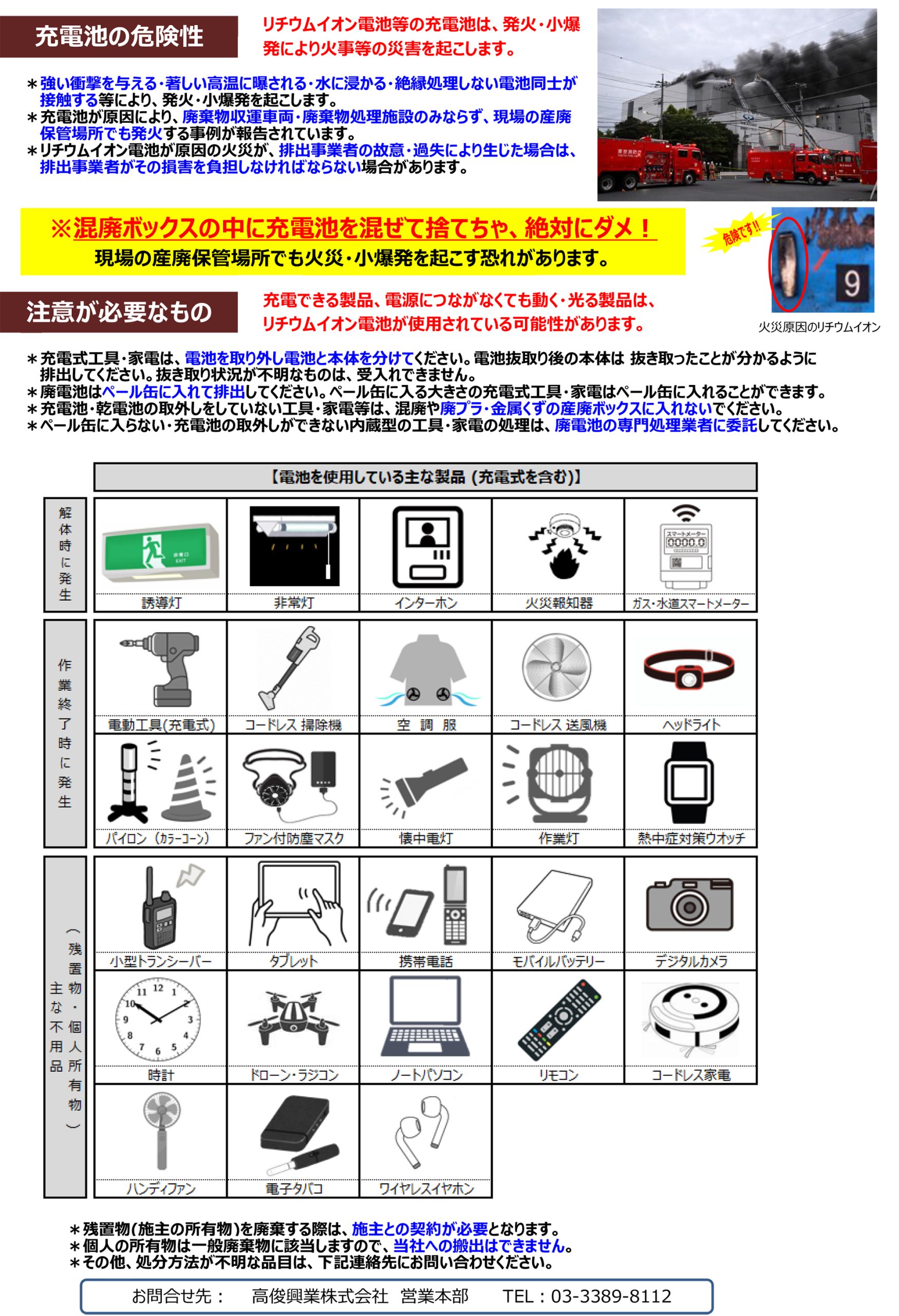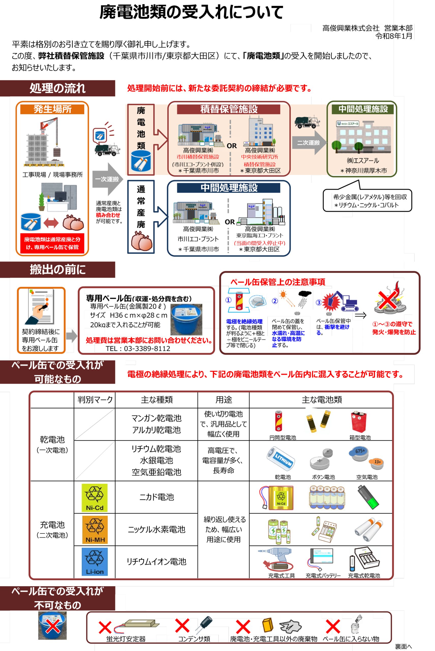 廃電池類の処理 | 事業紹介 | 産業廃棄物の収集運搬・中間処理・リサイクルの高俊興業