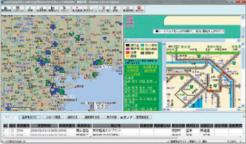 当社ではGPSを2000年に全車両搭載し、運搬ルートの軌跡確認ができる体制を整えています。このシステムにより、お客様からの要望や作業所への到着時刻確認等についても迅速に対応が可能です。なお、リスクマネジメントの一環として、マニフェスト管理システムとGPSシステムの一元管理を実施し、適正処理を証明するデータとして顧客の皆様方からの問い合わせにも対応しています。