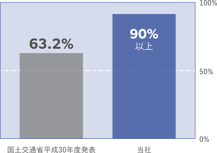 この数値は、国土交通省が発表した平成30年度の建設混合廃棄物のリサイクル率が63.2%であったのに比較すると、極めて高い率となっています。